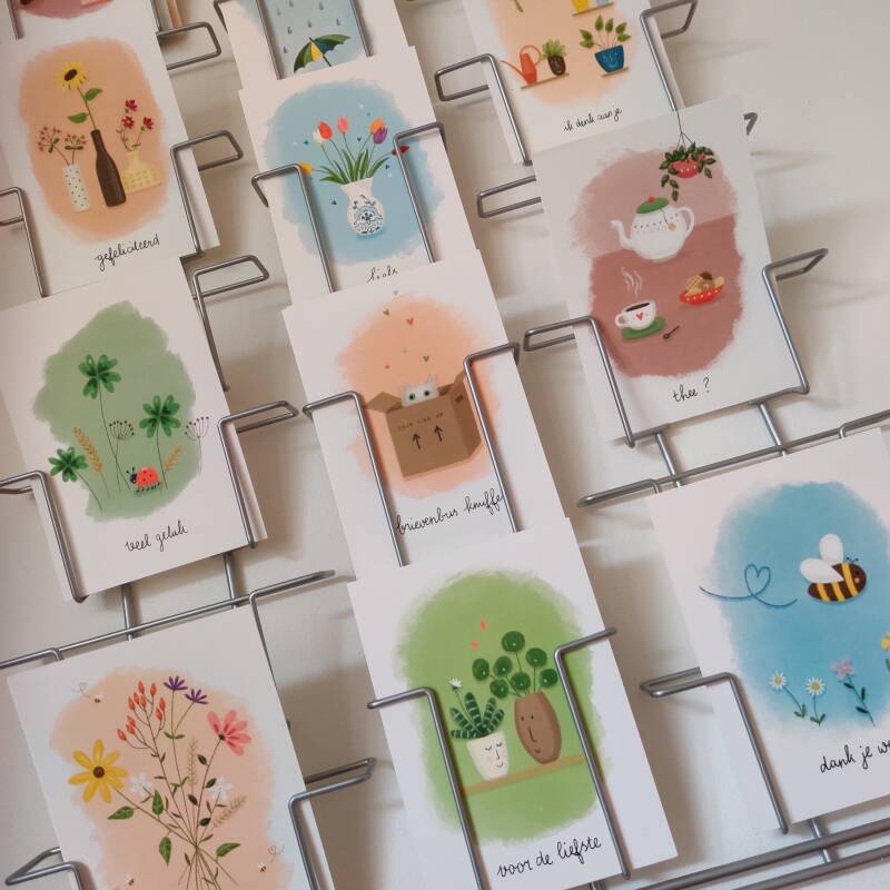 Ook al ben ik inmiddels al lang aan het werk als illustrator, het is voor mij nog steeds het fijnste beroep wat ik kan bedenken. Mooie dingen maken waar andere mensen blij van worden. Het maken van kaarten is daar heel fijn voor, want het is laagdrempelig. Kaarten worden verstuurd en bereiken anderen. Het beste om te horen is eigenlijk als iemand me verteld dat ze de kaarten ophangen in huis. Dat is ook de reden dat ik de Delft verjaardagskalender heb gemaakt, in 2025 gevolgd door mijn Amsterdam kaarten serie en -kalender.